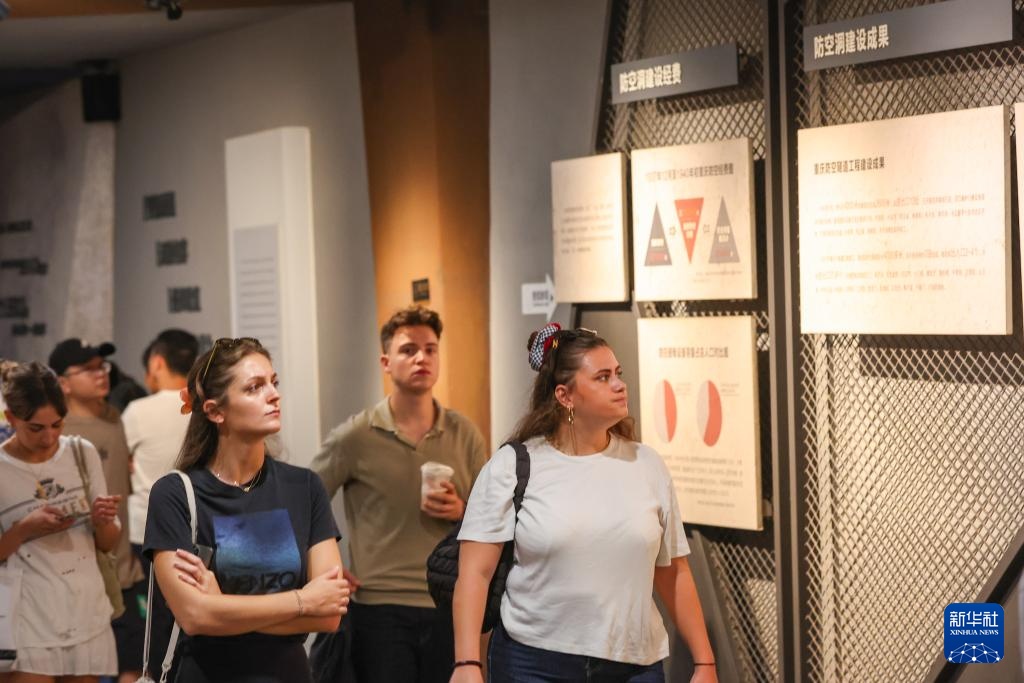 10月1日,俄罗斯游客在重庆市渝中区参观十八梯大隧道遗址。